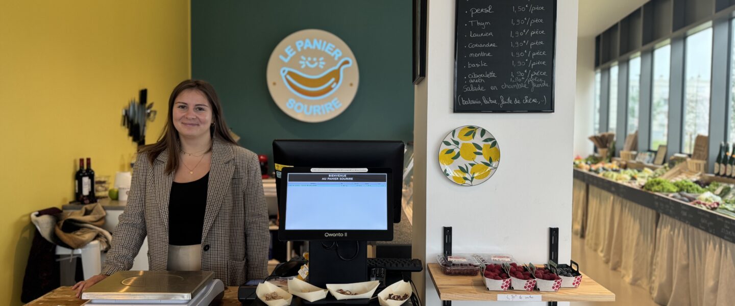 Le Panier du Sourire est un primeur fromager épicerie fine avec un double projet social car on y travaille l’inclusion sociale et professionnelle des personnes en situation de handicap. Je m’appelle Marion, je suis éducatrice spécialisée et je travaille avec Pierrick, qui est primeur fromager. A deux sur le projet, on s’équilibre ; nos cœurs de métier sont complémentaires.