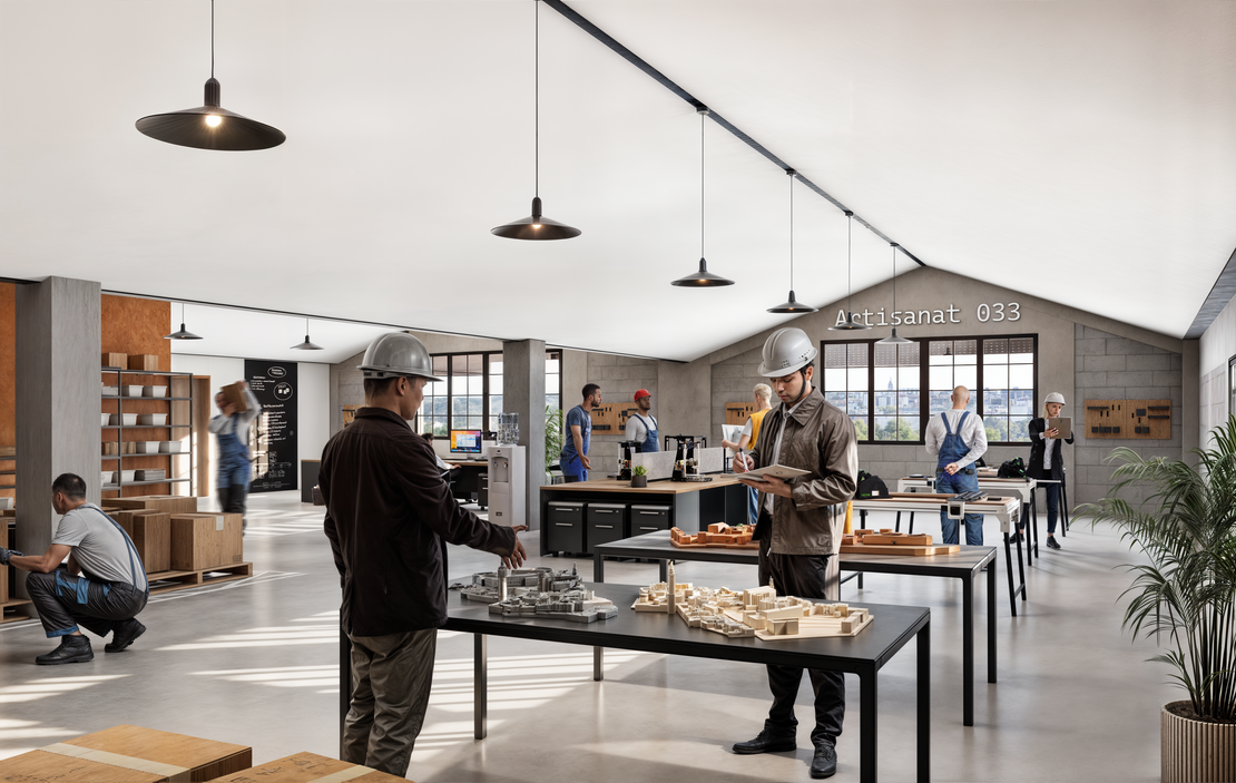 • Mutualisation des équipements du bâtiment pensés spécifiquement pour s’adapter aux contraintes des activités productives et artisanales.