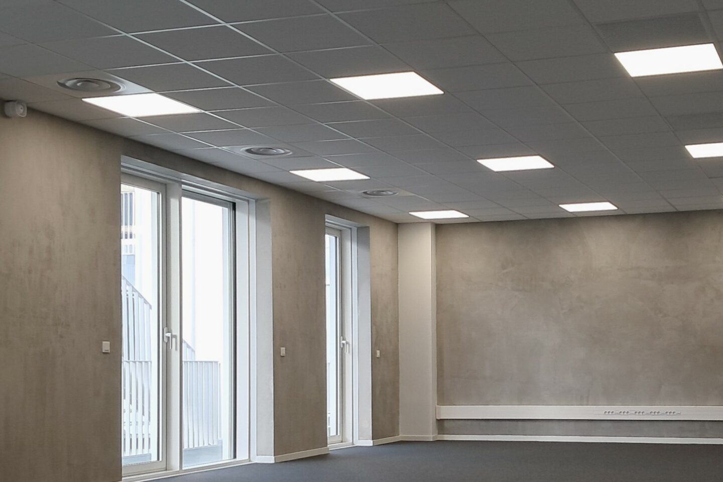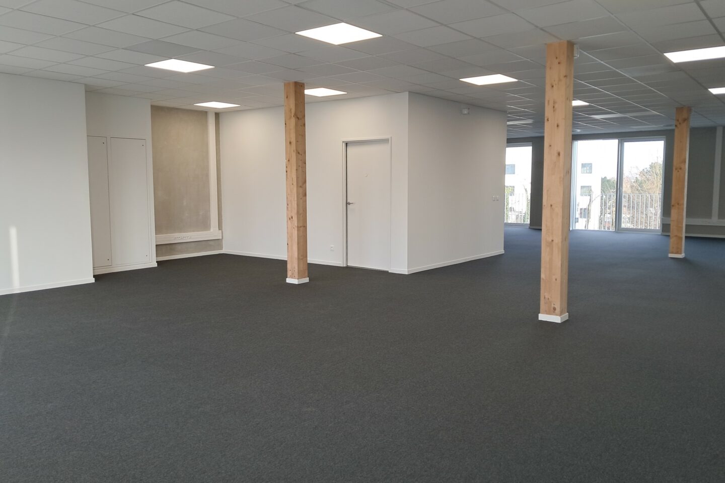 • Bureaux livrés aménagés avec solution de rafraîchissement : menuiseries extérieures et intérieures ; pompes à chaleur ; compteur 12kVA ; sols (moquettes) murs (peinture) et faux plafonds acoustiques :